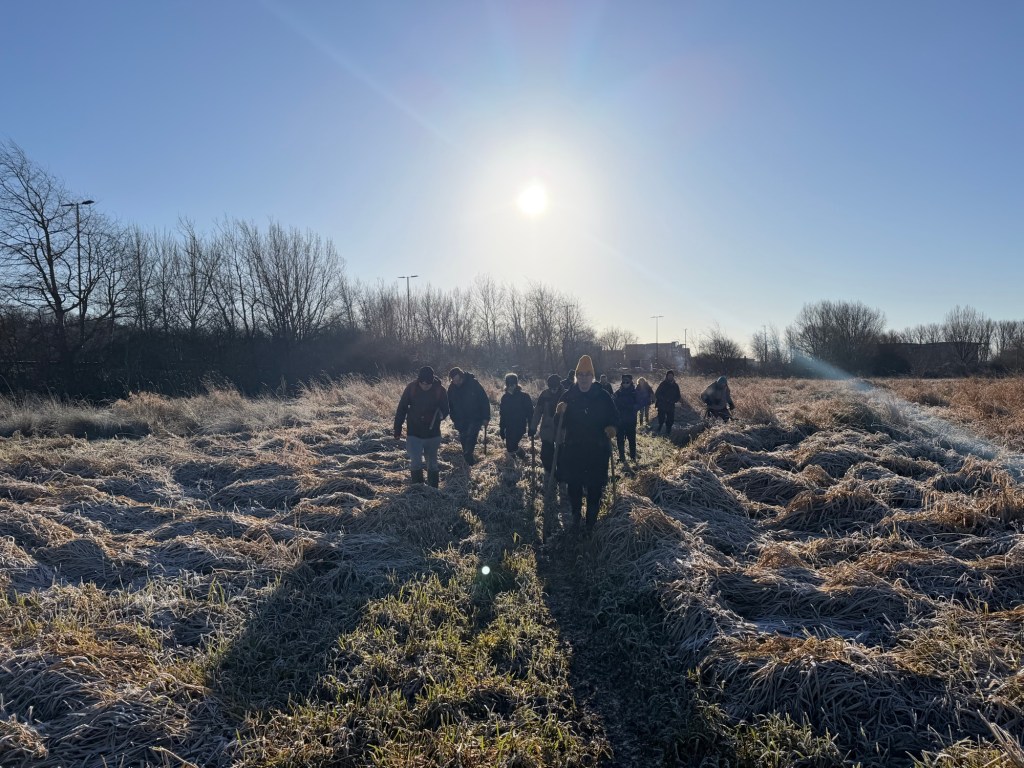 We walked side by side, trampling the frozen grasses. It’s going to make the path wider and easier to use when the planet warms up again and everything starts to grow.