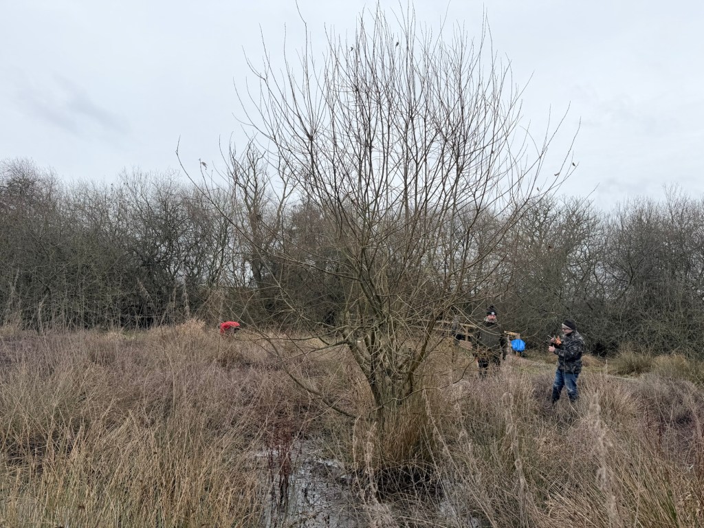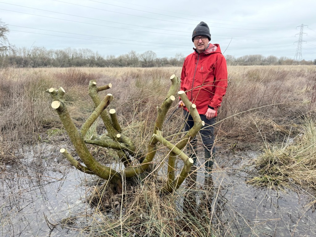 We pollarded them in the way that has been done in marshlands for centuries. Continually pollarding produces new growth indefinitely. And the branches we cut off we planted. They’ll grow into new willows and hopefully the beavers will enjoy them.