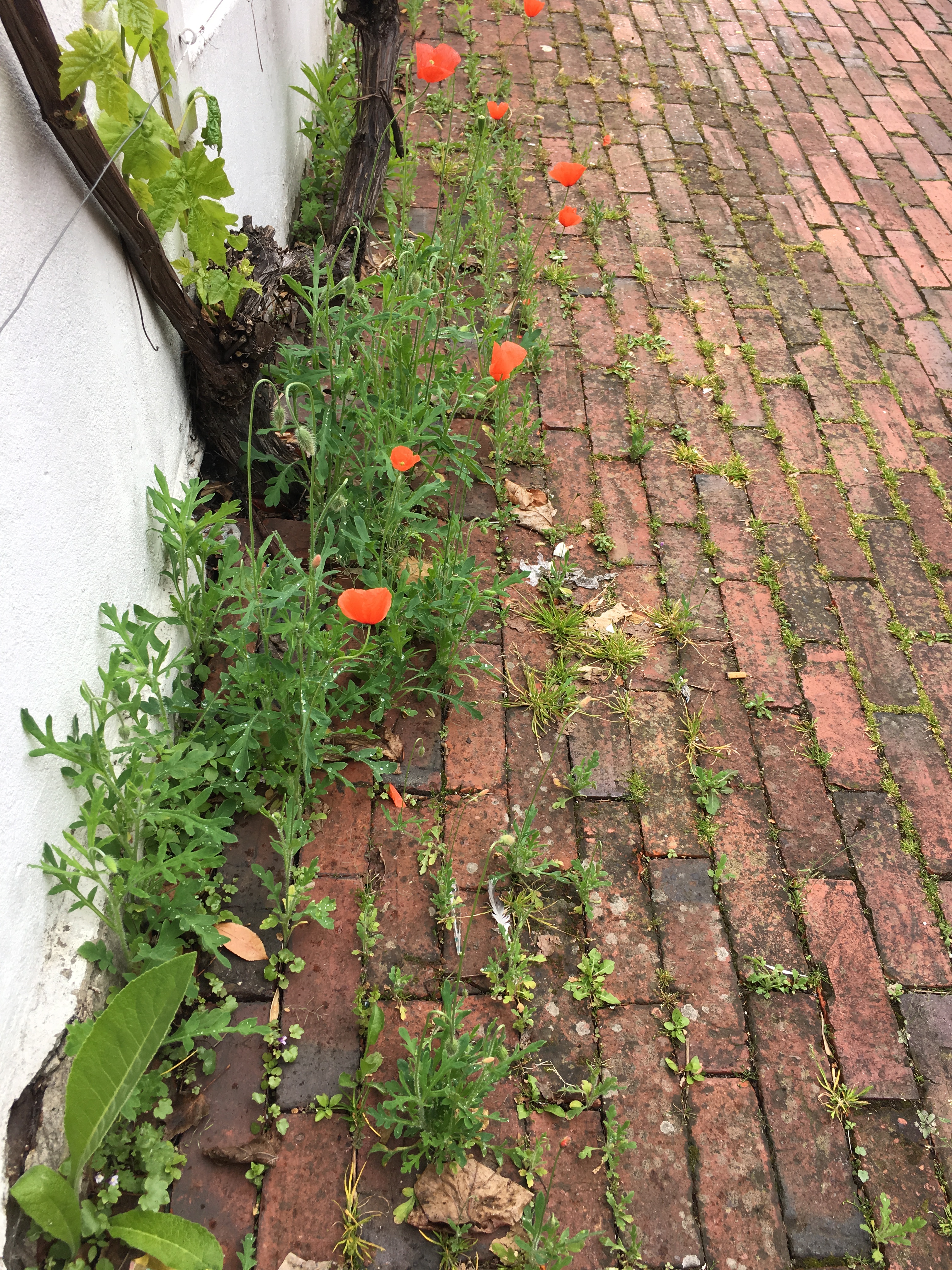 The iconic field poppy grows where the authorities have sprayed weedkiller. In much the same way as poppies flower in the shell craters of war zones they germinate in the face of the chemical onslaught. But they also do well if you simply scatter a pinch of seeds along a paved path, so if you find a ripe seed pod collect some seed and sprinkle them somewhere else!