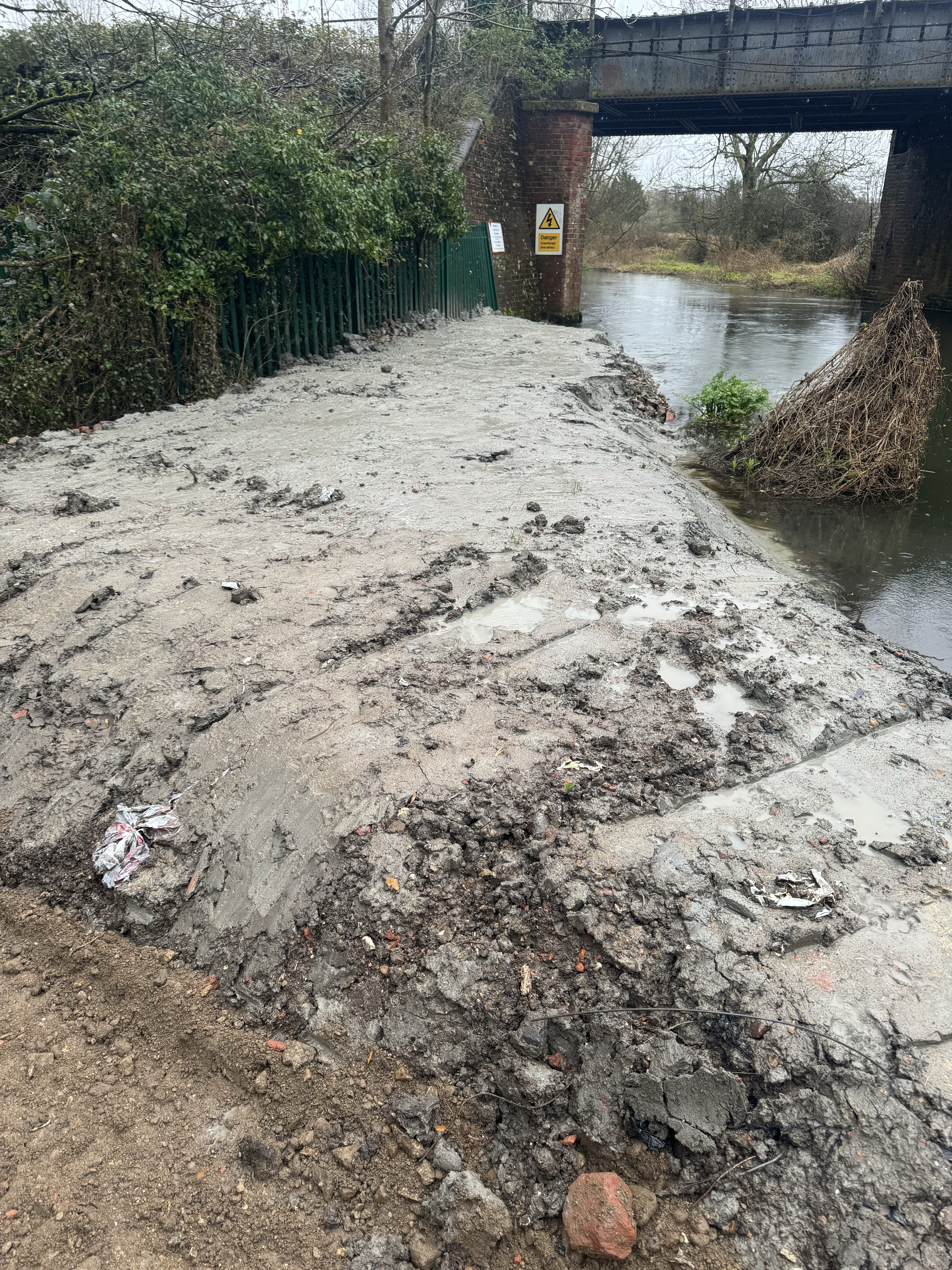 They’ve felled quite a lot of trees and covered a length of the bank of the river with tons of demolition rubble and covered it in clay. It looks absolutely hideous, and it’s spoilt a fair length of the brook.