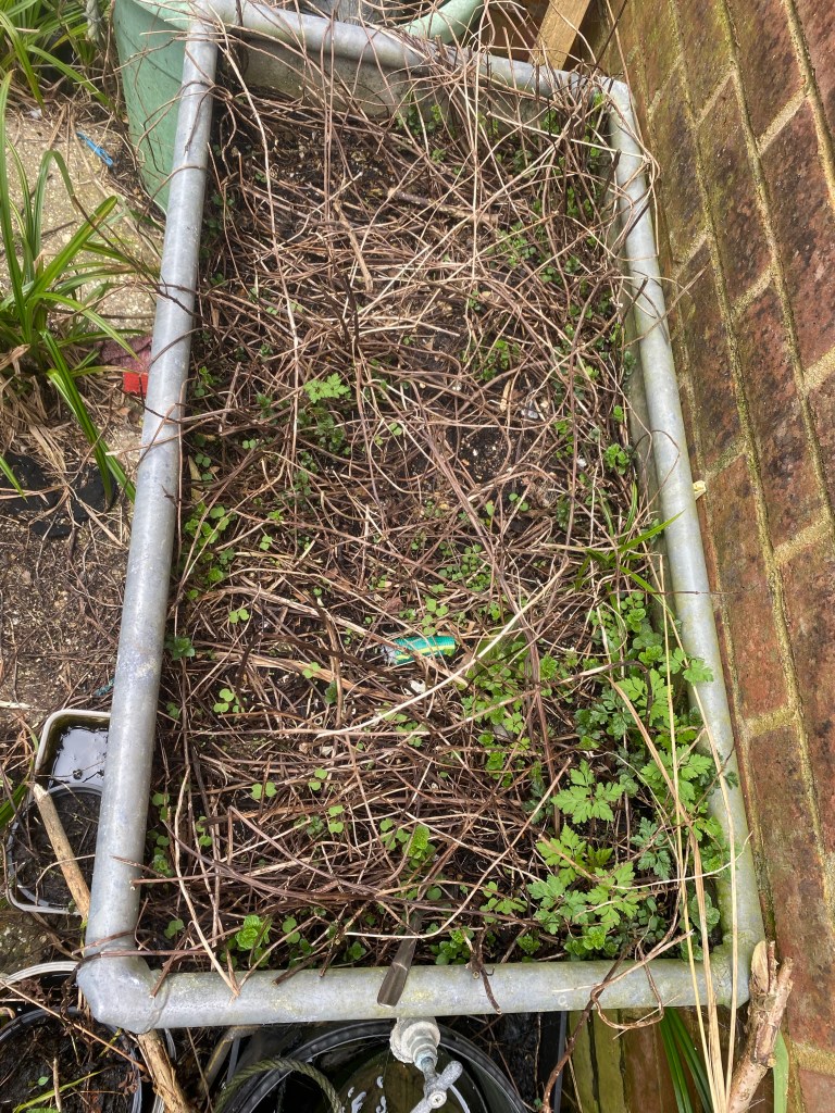 There’s another down pipe that takes water off the roof, and that goes through a tank full of mint, and trickles into the pond slowly after rain.