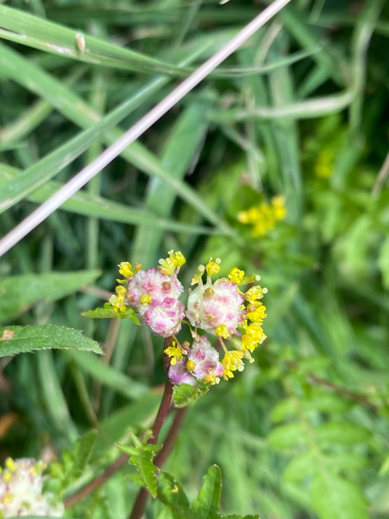 The same has happened to the meadow rue. Again I was checking to see if the seed was ripe when I noticed a gall of another midge. The brown balls are the galls and the little green shapes are the seeds I’m after. Well, I was after, that’s until I discovered lots more meadow rue all over the marsh.