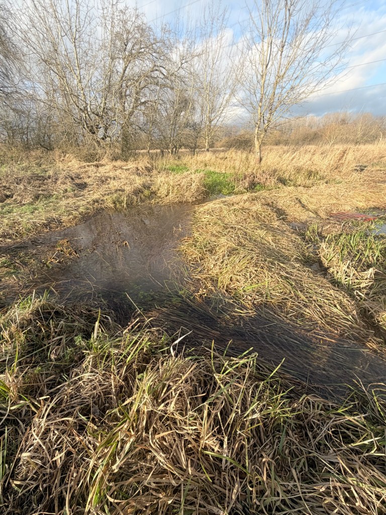 You see, we’ve had a lot of rain. Our dam is really effective and has kept the marsh wet all through the drought. If we get too much rain, and the marsh gets even more flooded we might not be able to stomp. And amazingly our lovely living and breathing dam has moved itself to one side to let some water out. I could not believe my eyes. We can go and put it back next year.
