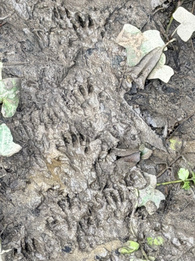Meanwhile the river levels are dropping. Mud is exposed and footprints appear.
