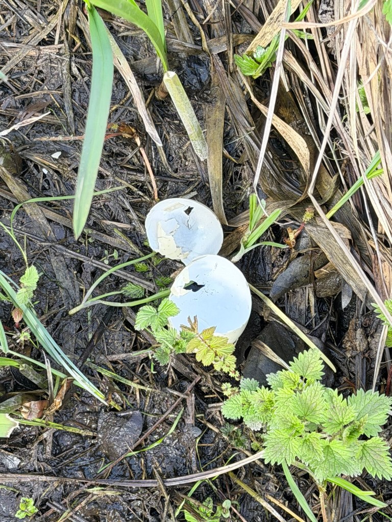 The early bird has already laid eggs. And a fox has nicked one. Probably. It was a Canada goose. Just a shell now.