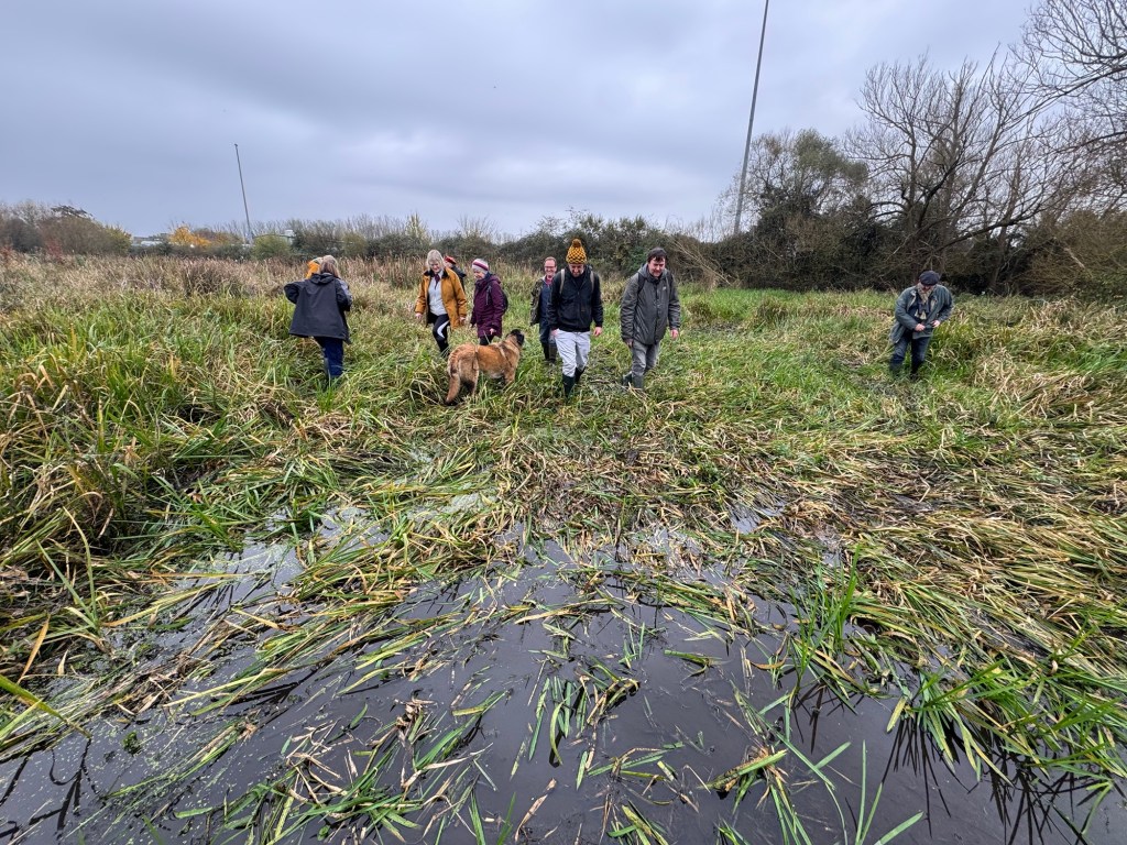 Simply stomping a small part of the marsh helps create a muddy wetland that was overgrown before we started. It’s what cattle would have done, but they’ve gone now. This year we’ve been scything a bigger area than last time and we’re going to stomp it all down on 21 December. So we need more stompers!