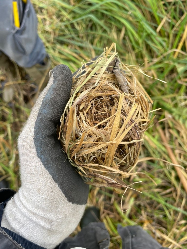 We also found a harvest mouse nest in the sedges we cut in January. So they don’t take long to take advantage of the new grown areas.