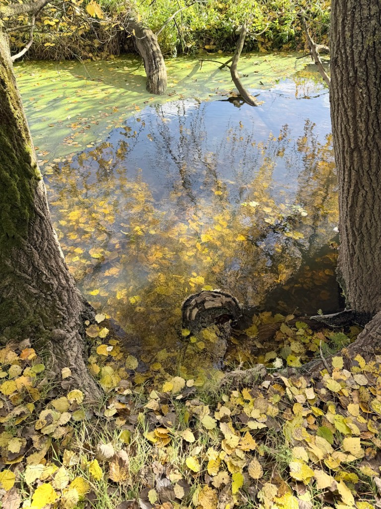 The rain had filled the marsh, the water was clear and Poplar leaves lay like gold coins.