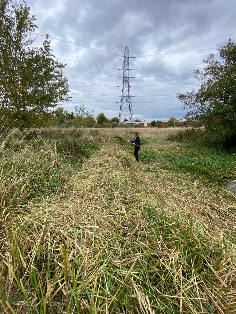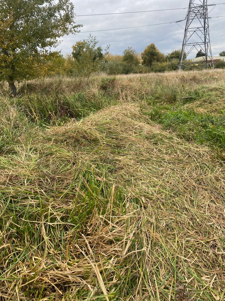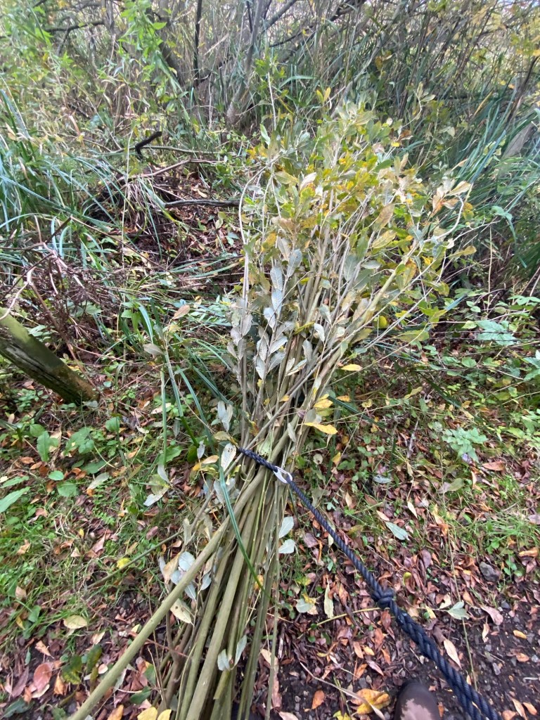 Our first stop was Watermint bridge and the area either side of it. We scythed the grasses and piled them up in the ditch, adding to the little haystacks we made a little while ago. We added some willow cuttings to make an avenue alongside the bridge.