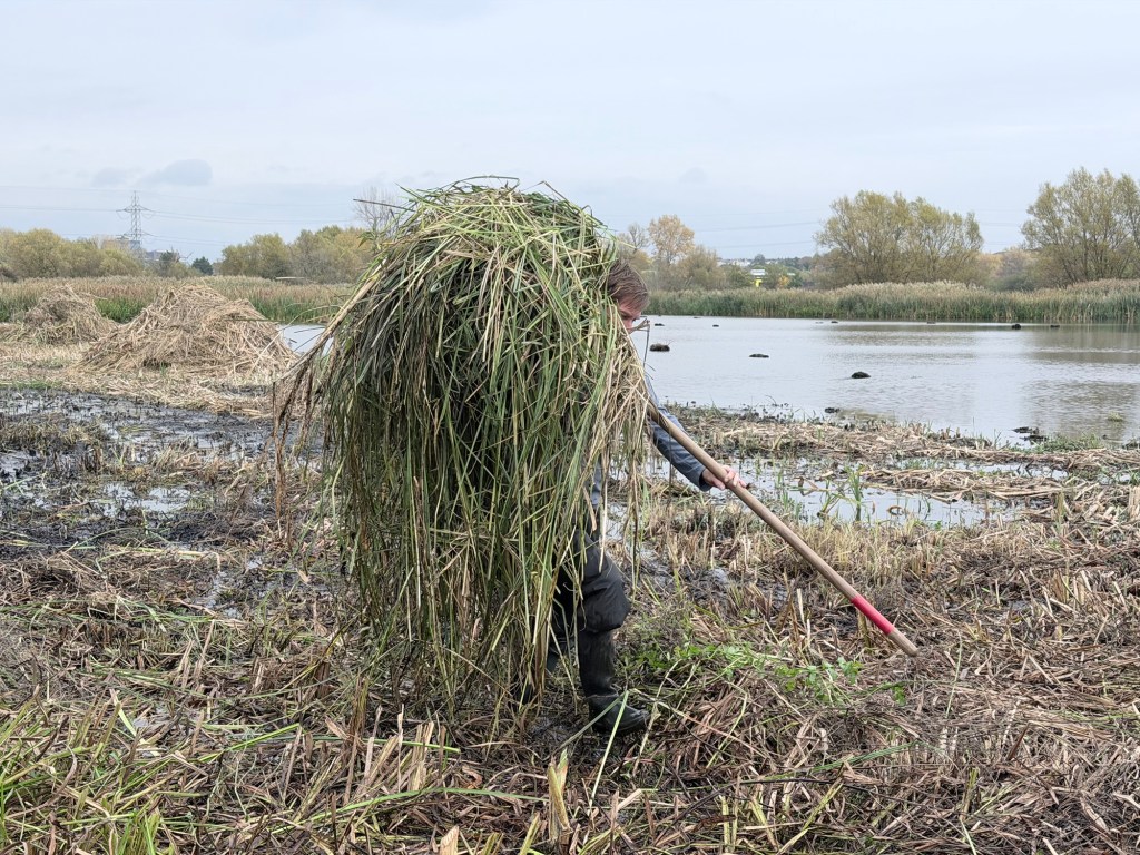 It’s a good workout, cutting the reeds and sedges, raking it all up and carrying it off the marsh. It’s amazing how effective scythes and rakes and pitchforks can be, it’s hard work but I know of worse ways to get fit.