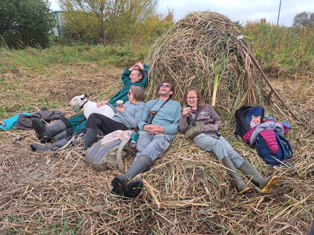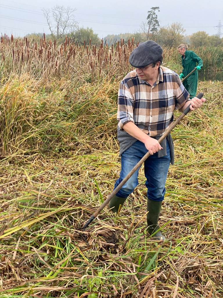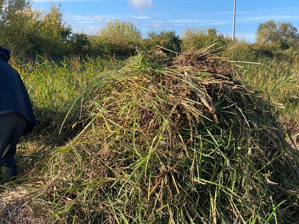 We could even make a heap as somewhere warm and sheltered where we could sit quietly to watch the marsh without disturbing anything, especially when we run out of energy! There’s still a lot of marsh to be cut, and it’s hard work!