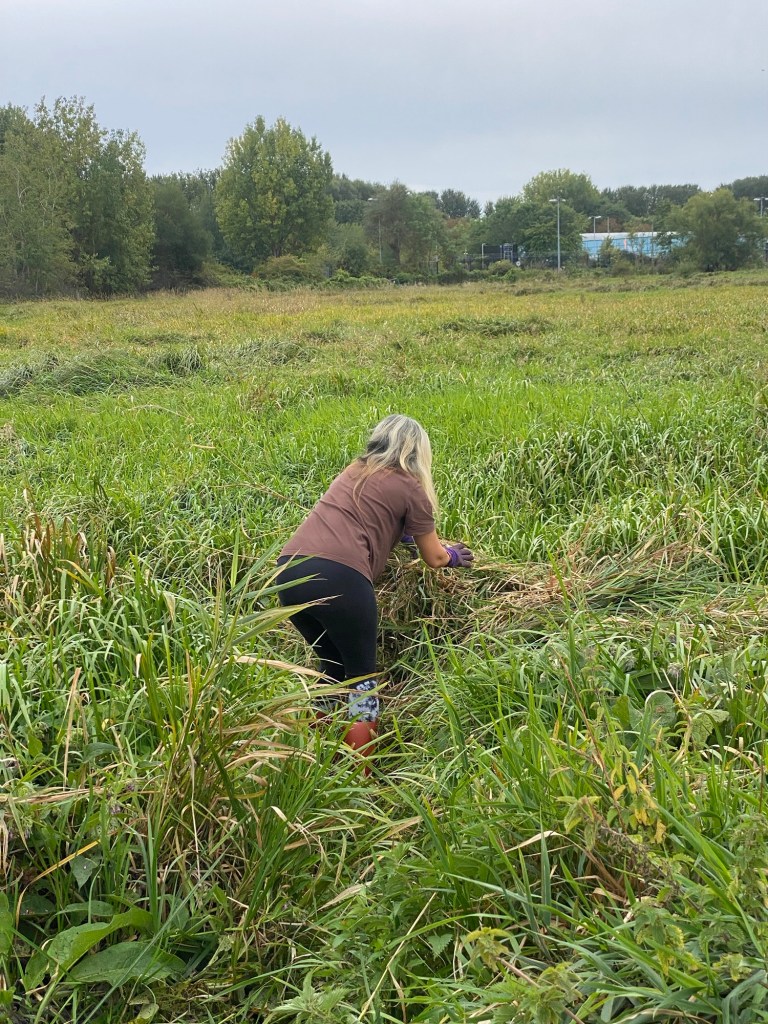 We had a change of plan today. Before we started work we discussed our options, go on to the marsh and carry on from last week, or head to Watermint bridge and build a haystack.