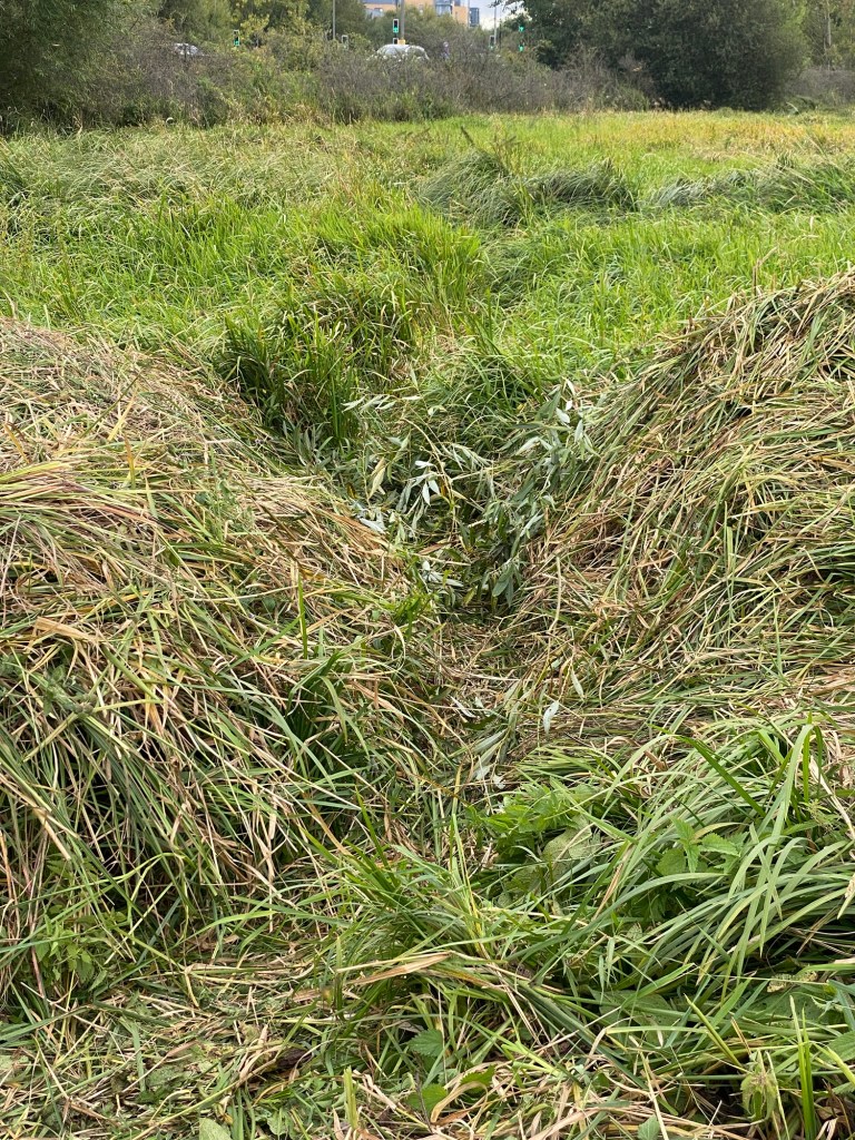 We scythed and hacked the vegetation and piled up what we’d cut.