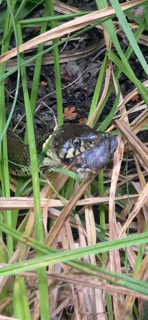 The dam we built in May has held back the water that makes our marsh stay wet all year round so far, and has provided homes for grass snakes and otters among other things.