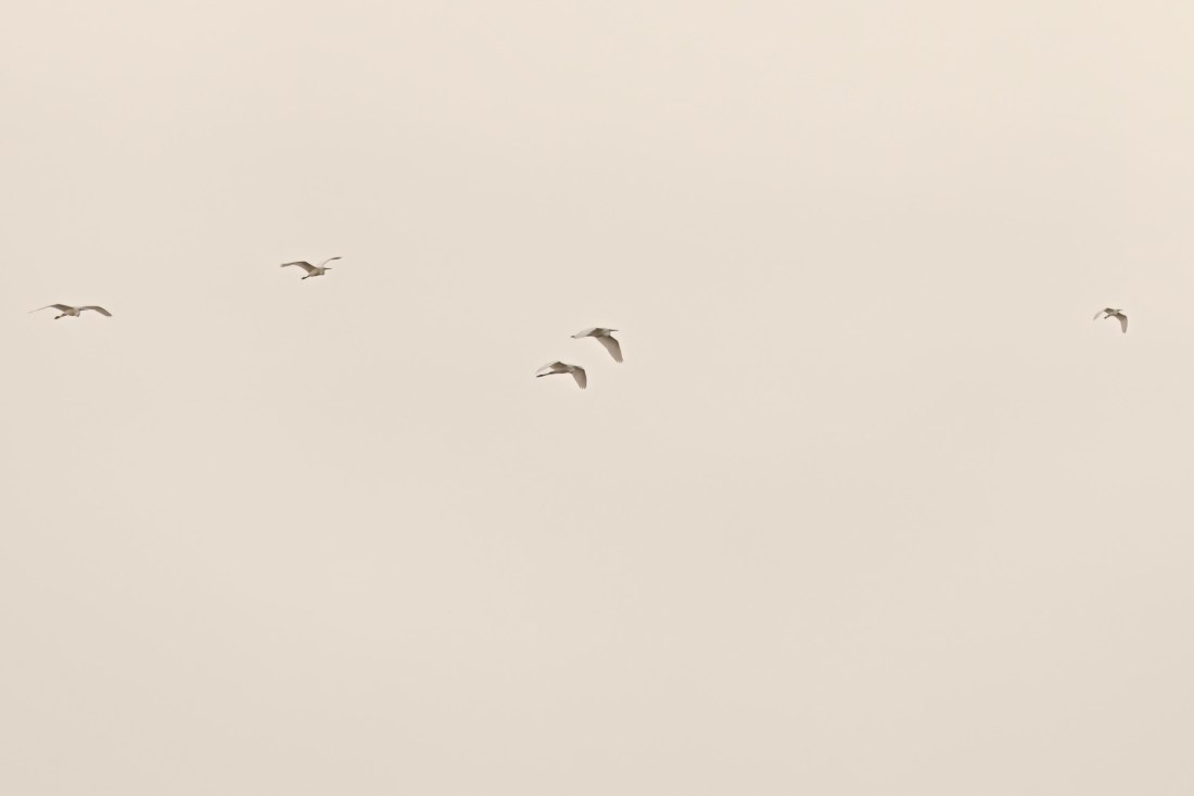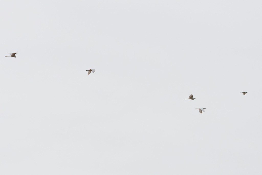 We were still gunning for the owl and generally chatting, when a V formation flying in from the left caught our attention. Geese? No, a little egret leading 4 great white egret flapping eastwards. Another Fobney first for Nigel. Me, I’m the 3 GWE lady, however still wonderous to see.