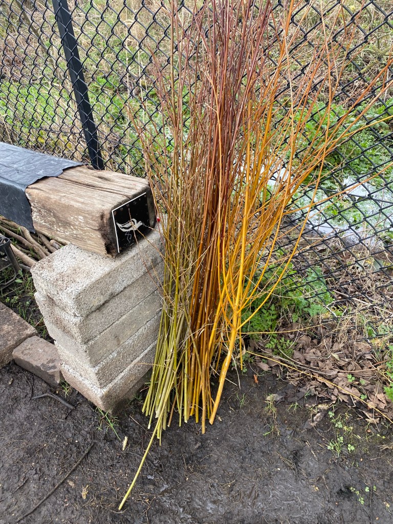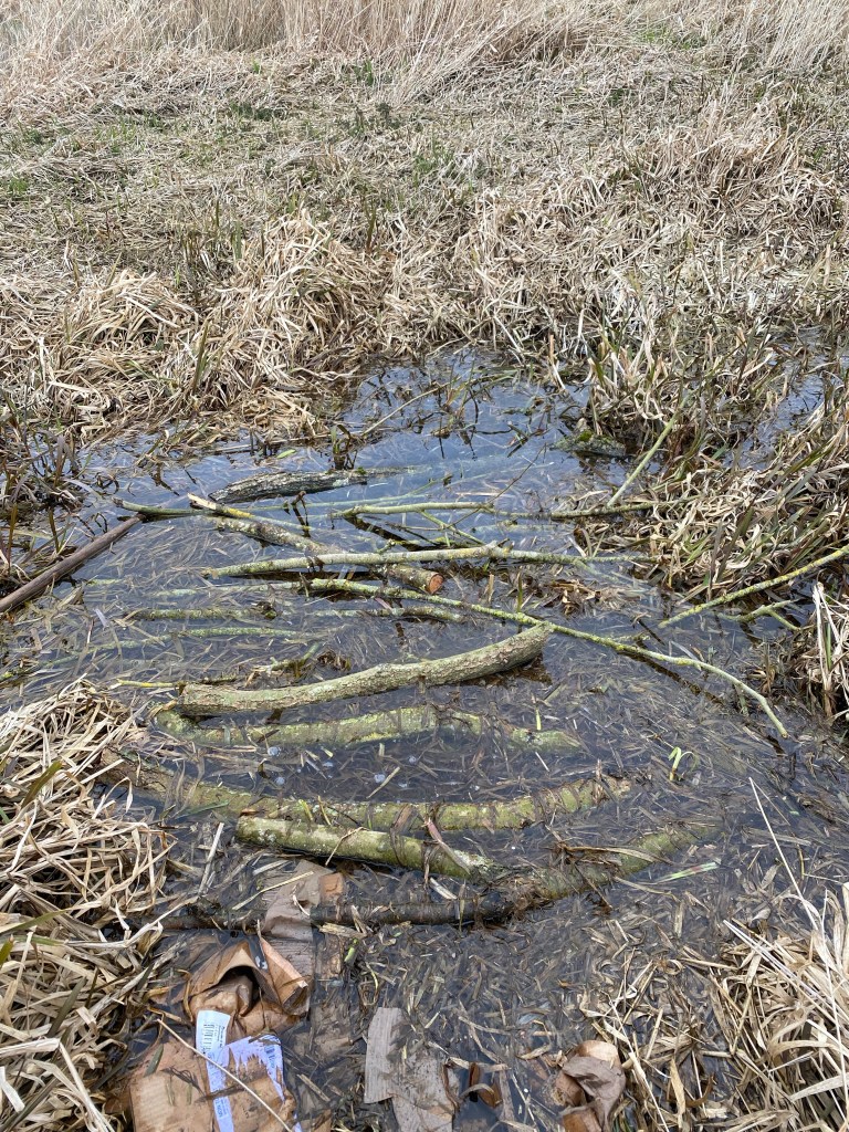 Once we’re done with that we’ll head out over the drier marsh nearer the road where we’re hoping to make a tree lined path.