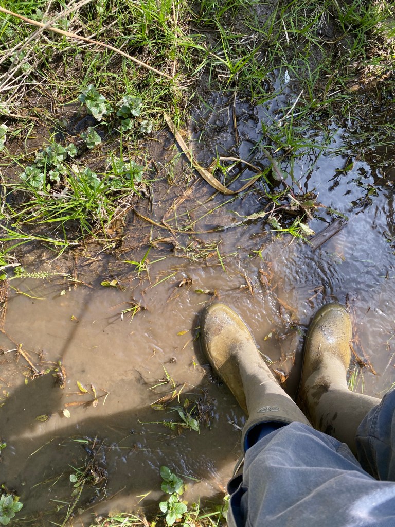 This is the first section which we made last time we were out. It has dried out a bit since then but there’s plenty more mud further along!