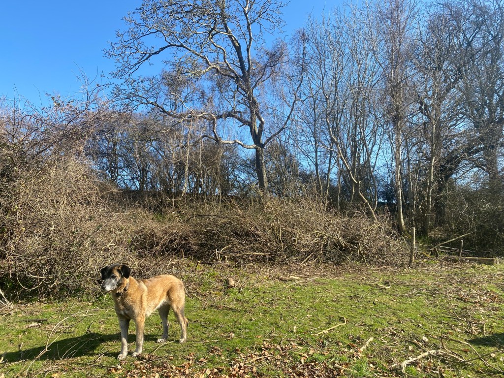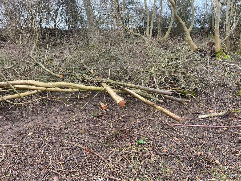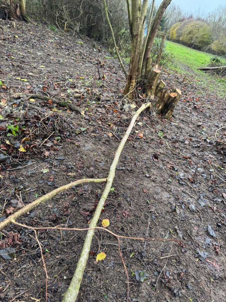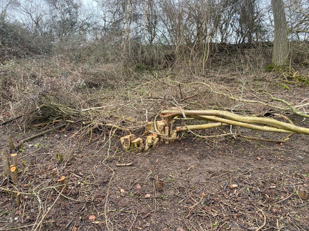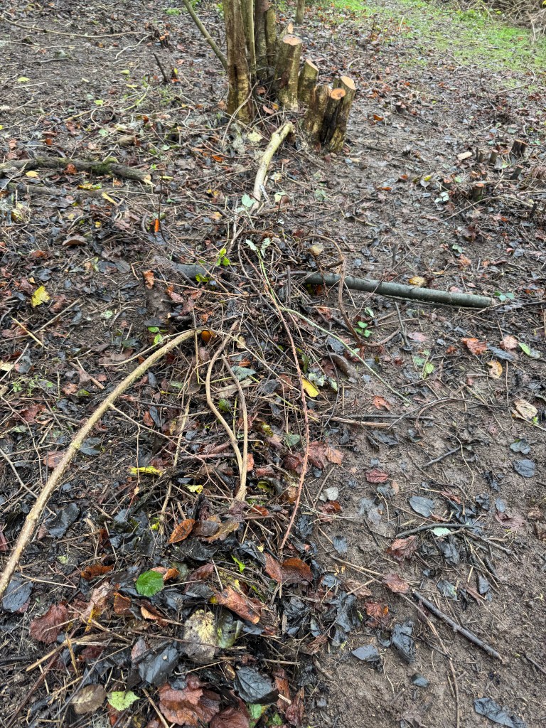 We started out clearing the site. It was a tangle of bramble clematis blackthorn and rose. Then we could see the hazel we were after.