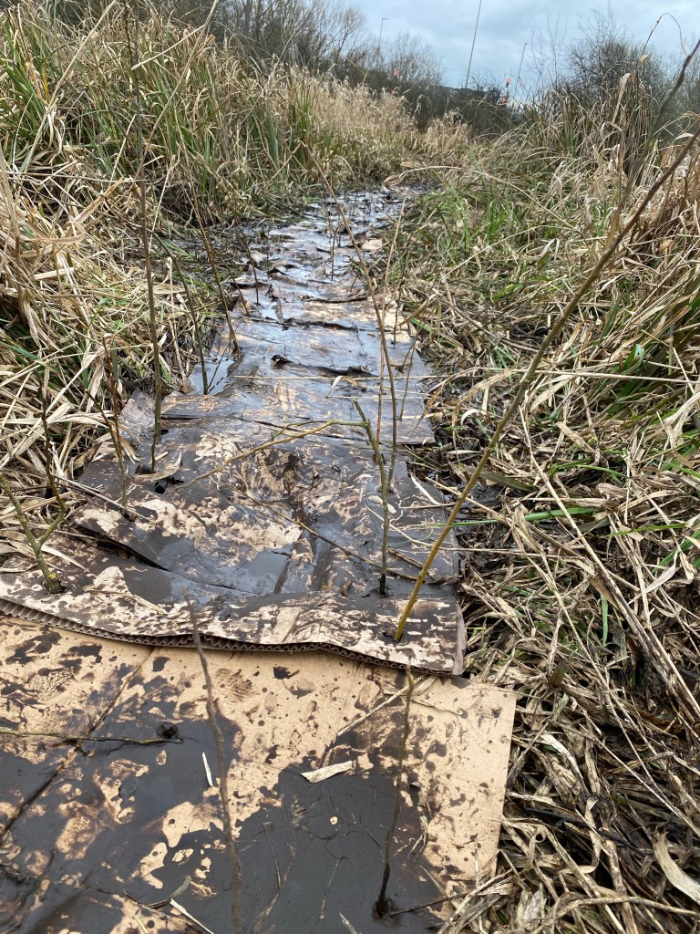 The bough was thrown into the ditch to join the others. That should help slow the flow, even more when the willow roots.